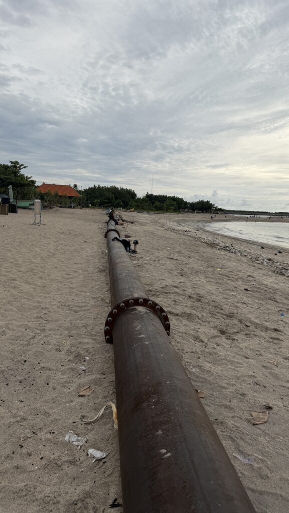 滞在していたクタビーチには、砂を運ぶパイプラインが新設してあり少し異様な感じがしましたが、