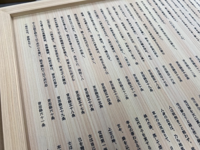 東濃ヒノキの間伐材を活用し、母材の1面に「言志四録」(1,133条)から47条を抜粋しボールペンに教えを刻んだ商品となっています。