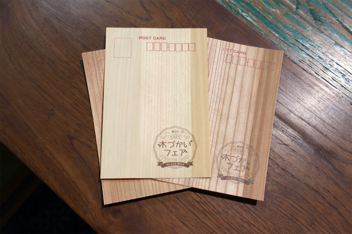 本イベントで使用する間伐材のスギとヒノキのポストカードの製作をご依頼いただきました。