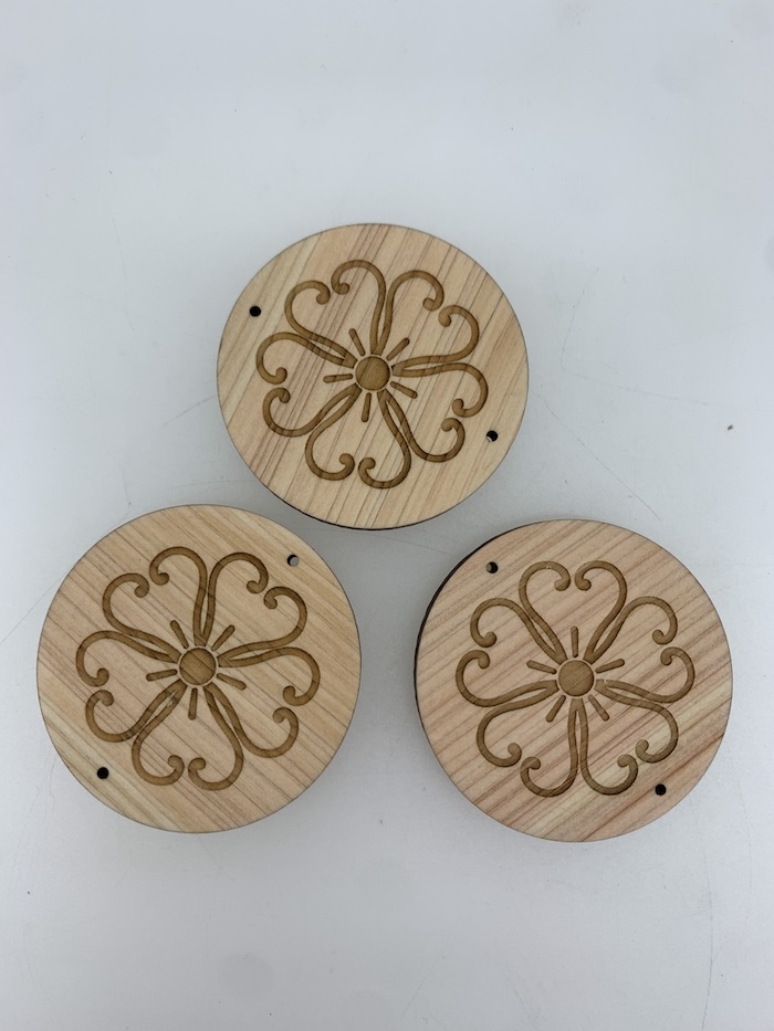 お客さまが手荷物を入れるカゴにつけるタグやノベルティーでお配りする小田原産ヒノキの塗装も、