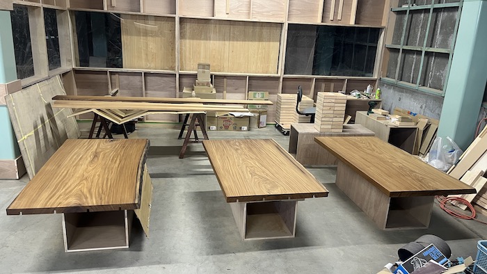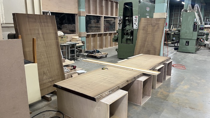材料はラ・ルースにある無垢板の天板を、さまざまなサイズに仕上げての提供でした。