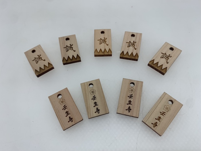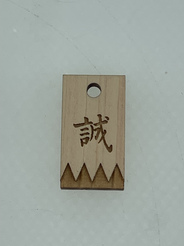 ストラップにはお寺の名前と、新撰組の旗印「誠」の一字を刻みました。