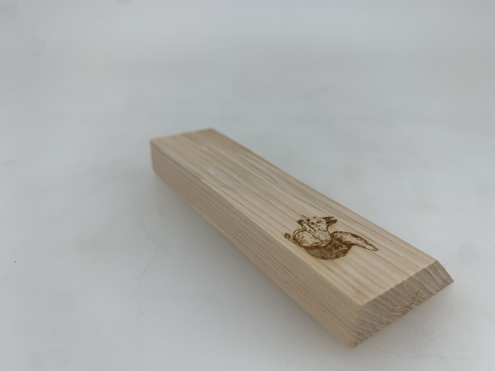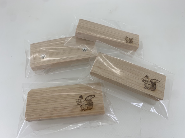 相談の結果、小田原箱根産間伐材ヒノキの耳付き端材から製品をつくることになり、完成したものがこちらです。