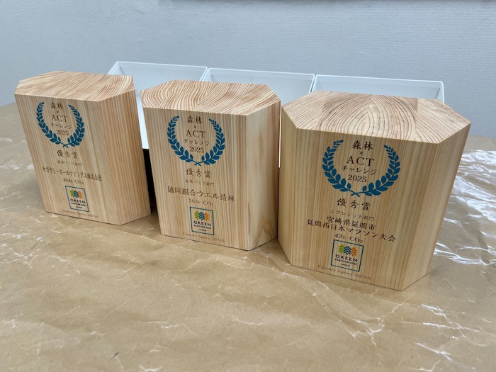 今年も林野庁からのご依頼で、「森林×ACTチャレンジ2025」のグランプリおよび優秀賞受賞者へ贈られる盾と