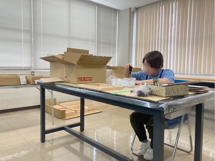弊社が所属している箱根物産連合会(小田原木工産業組合)へ火災の報告と事務所を探している話をした時に、連合会の事務局がある工芸技術所の建物内にレンタルスペースがあることを知りました。思い切って年末までと期間を決め、このレンタルスペースを、事務所と内職部屋としてお借りしました。