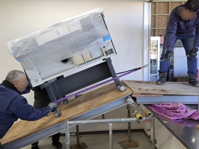 鳶の親方の力を借り、火災に耐え修理を施したレーザー機を新事務所に運び込んだのは、1月下旬のこと。熱で機械の上部が歪みましたが、動いてくれたときの感動は今でも忘れません。