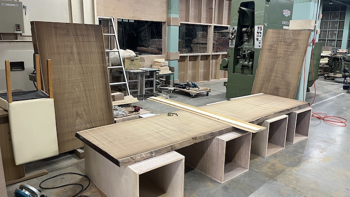 こちらはいま加工中の天板で、御殿場の老舗の鰻屋さんのテーブルやカウンターのすべてを共材で作ります。