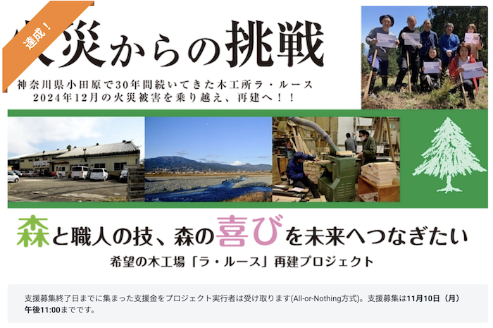 ラ・ルースにお気持ちを寄せ、ご支援くださった皆さまのおかげで「希望の木工場〝ラ・ルース〟再建プロジェクト」は目標金額の300万円を達成することができました。
