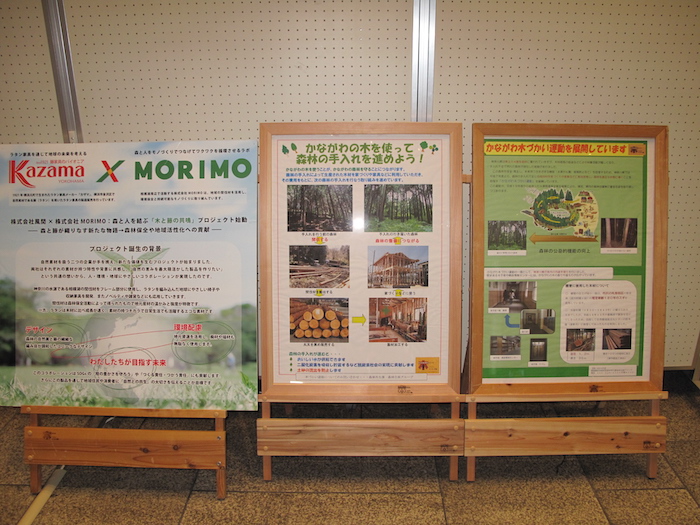 林野庁が定める毎年10月の「木材利用推進月間」に合わせて、神奈川県庁新庁舎の1階ロビーで企画展示を行っているとのこと。
