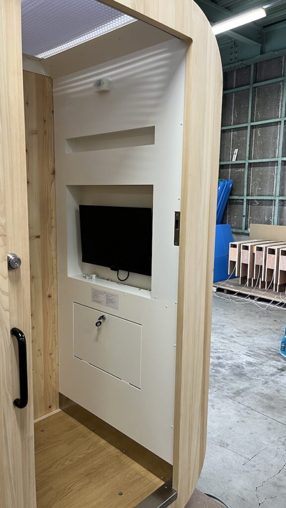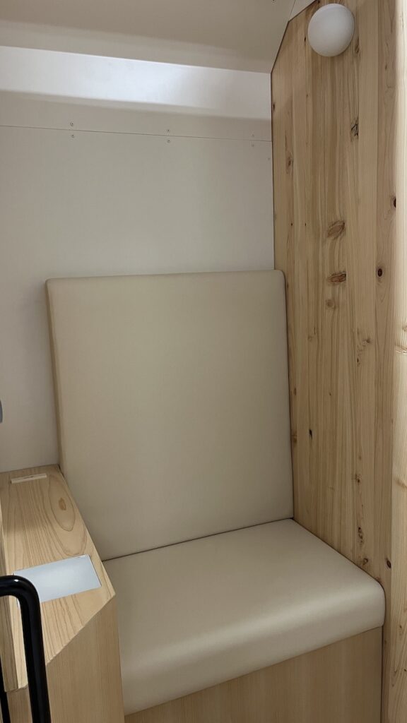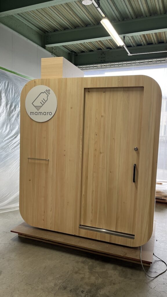 mamaroは一畳程度のコンパクトなサイズながら、木の雰囲気がやさしい落ち着きを醸すデザインの完全個室ベビーケアルームです。