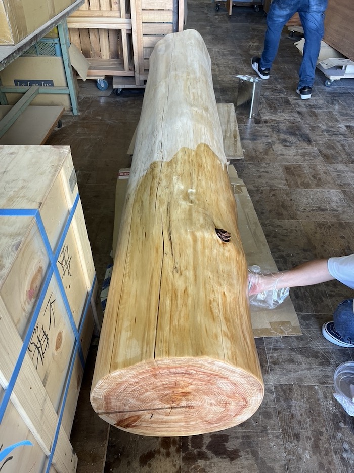壁面オブジェ用の材は伐採前、内部の腐食が心配されましたがまずは製材をしてもらいました。