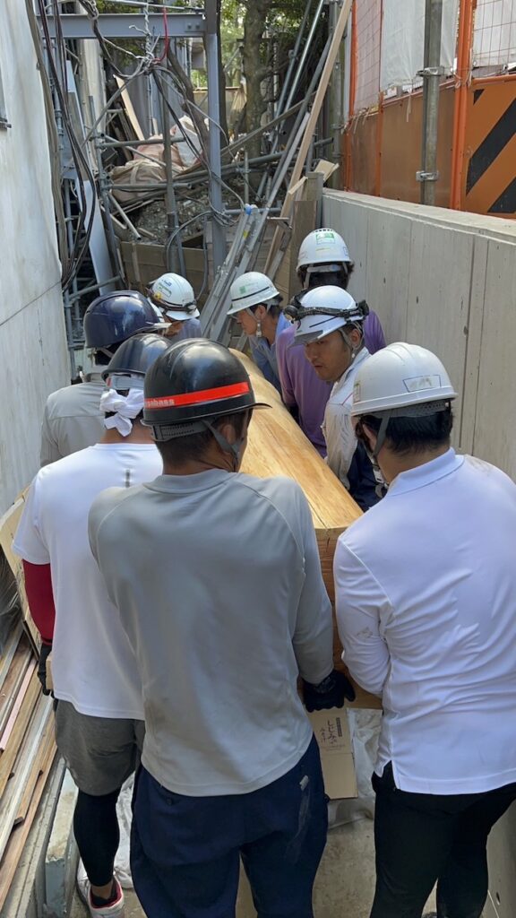 弊社スタッフはもちろん、ご依頼主である林業家さんも、現場工事関係者にもお力を借りました。