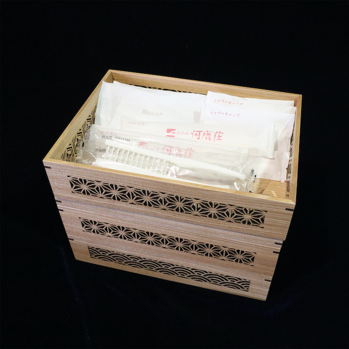 新規のご依頼で、箱根にあるホテル河鹿荘様のアメニティボックスとコースターを作らせていただきました。