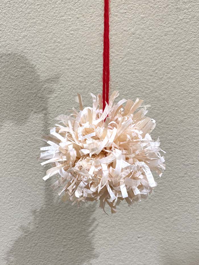 ヒノキのかんなクズを使ったポンポン玉の完成品です。