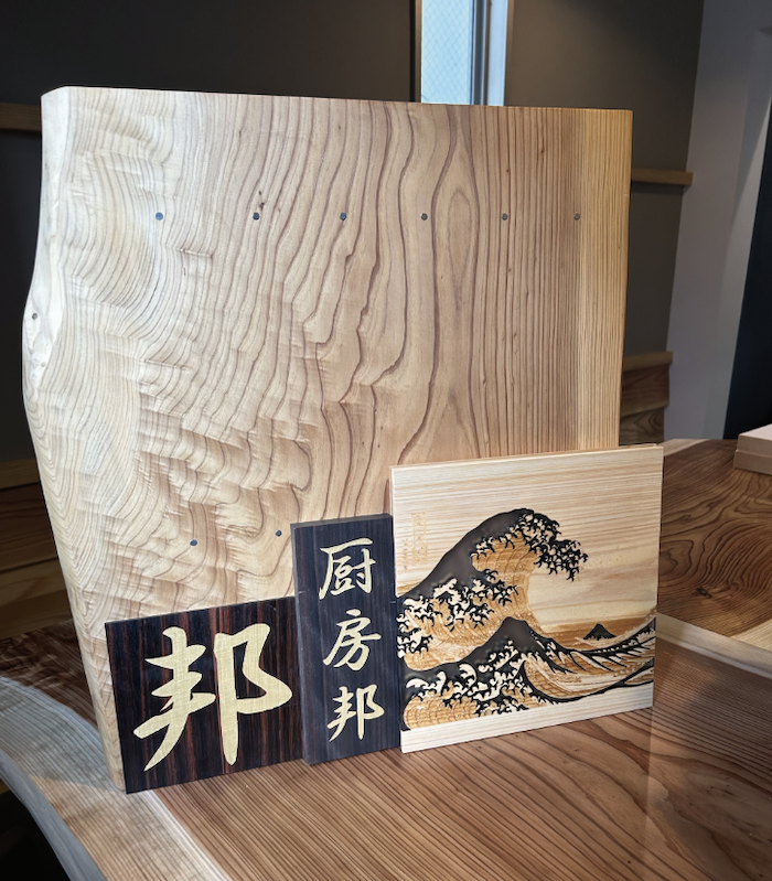 オープン前の店舗を社長が見学させていただいたときの印象で、看板の書体や材料を決めました。