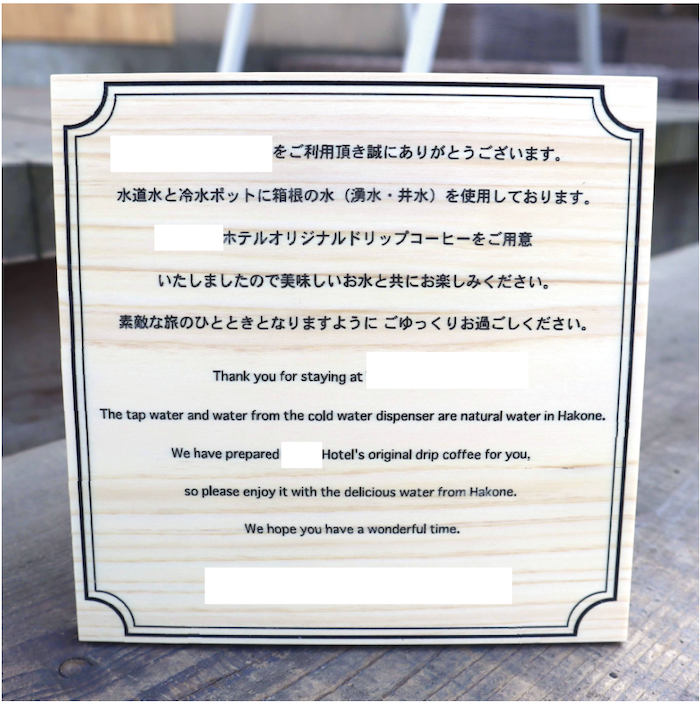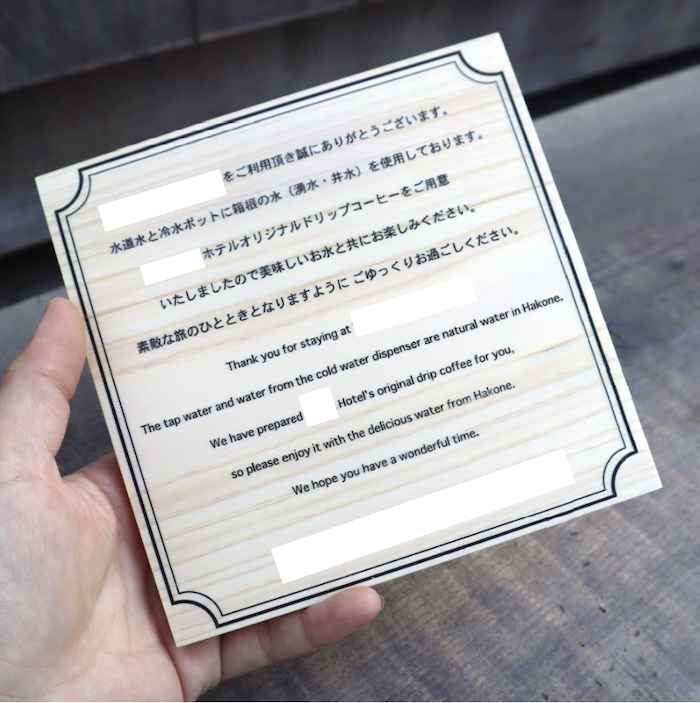 箱根の老舗ホテルからのご依頼で、客室用の卓上案内板を製作しました。