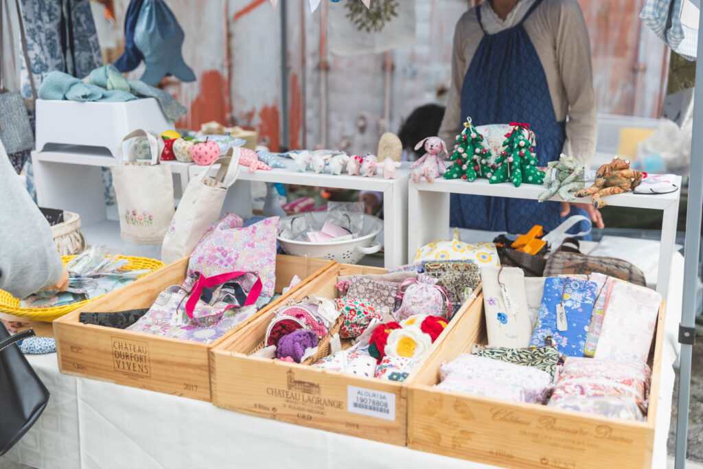 リネンやリバティプリントなどのコットンを素材に、針をチクチクする楽しさを伝えたいマダムたちが会場でお待ちします。