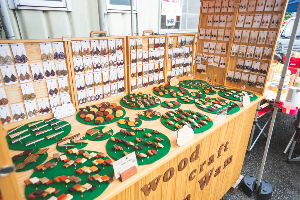 すべて一点ものの手仕事で作られる木のアクセサリー。