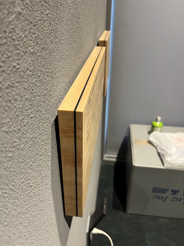 このパネルは、ヒノキに黒檀の寄せ木を入れています。