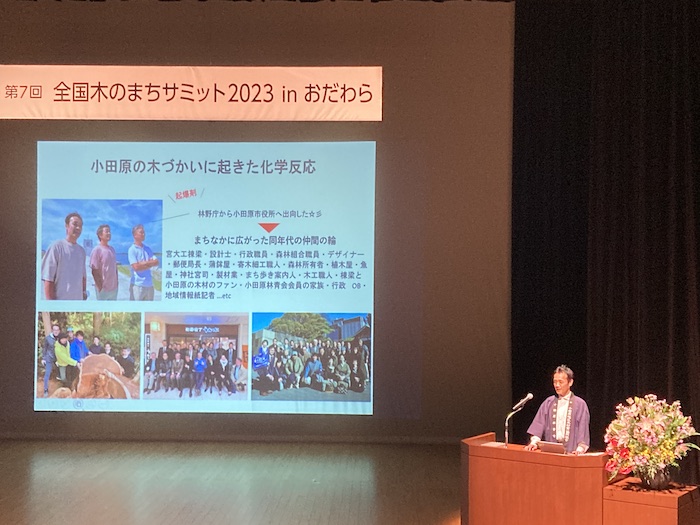 サミットでは、木の仲間・小田原地区木材業協同組合専務理事の髙木大輔氏が登壇し、小田原の木づかいを紹介。