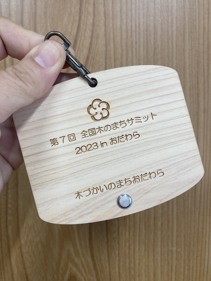 来場者に配布される木製パスケースを製作しました。