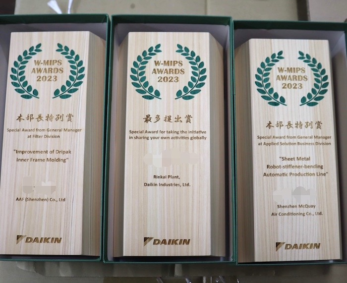 企業様からのご依頼で、昨年に続き木製トロフィーのご注文をいただきました。