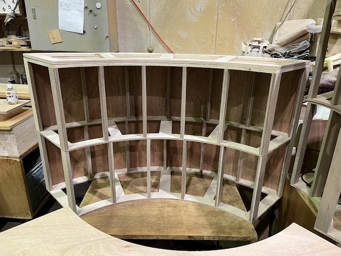 この丸棒をラ・ルースで半分にカットし、隙間なく土台部分に接着しています。
