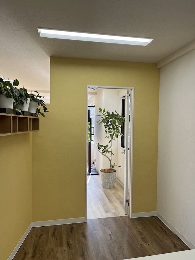 こちらのオフィス、緑がアクセントになり明るくとても素敵な空間なのです。