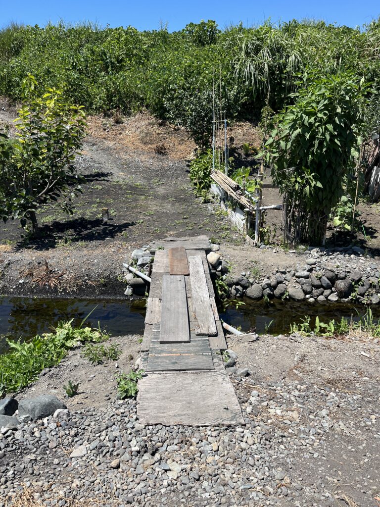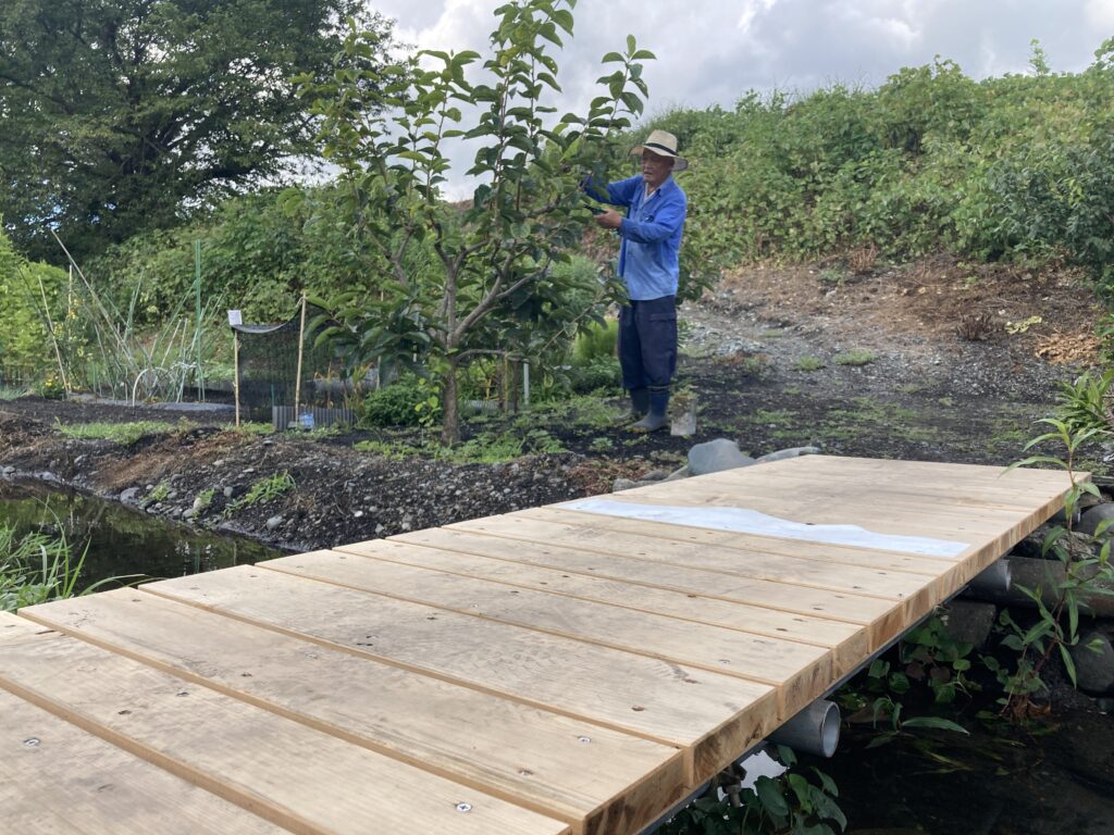 桂田さんの畑に渡る簡易橋(板を無造作に重ねただけのもの)が、最近傷んでガタガタしていました。