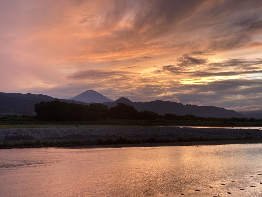 弊社社屋から歩いて30秒で、富士山を望む酒匂川の土手に出られます。