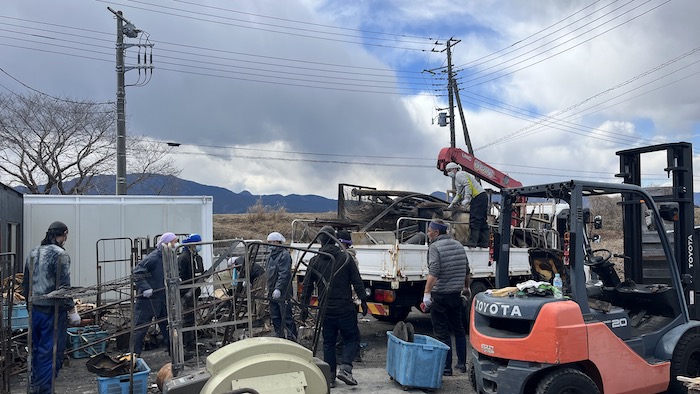火災で残った大きなものを屋外に運び出す作業で鼻の中まで真っ黒になりましたが、テキパキと片付けていただき