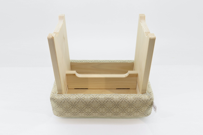 秦野産材で、という希望があり、2年前に秦野産間伐材ヒノキでの生産に変えました。「まくら正座椅子」という名前で、