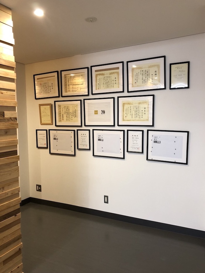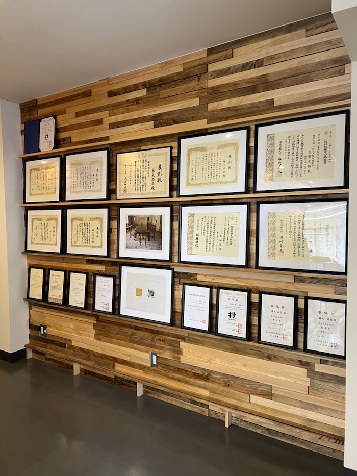 画像だと少し分かりづらいのですが、表彰状を載せるための棚板も、お客さまご自身でバランスよく配置くださいました。