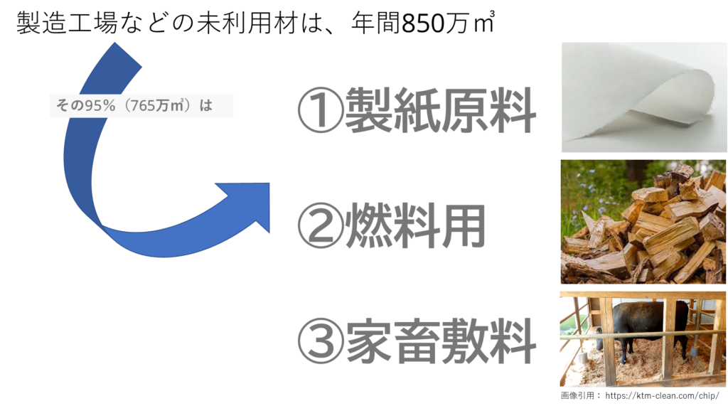 製造工場などの未利用材は年間850万㎥発生しているそうです。