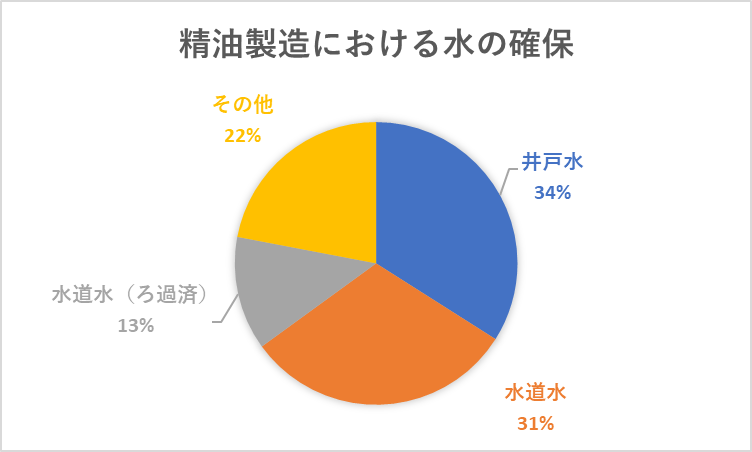 井戸水から、精油製造を行うのが全体の3割を占めるようです。