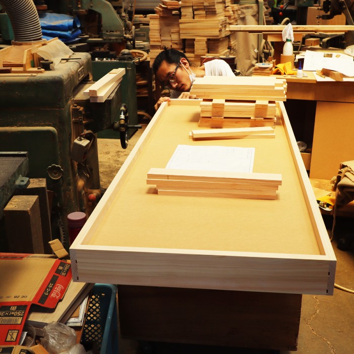職人の上野さんが、木枠を作っているところから写真を撮らせてもらいました。