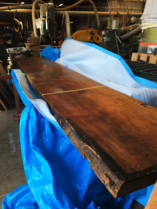 弊社の小田原工場に運ばれてきたバーカウンター。