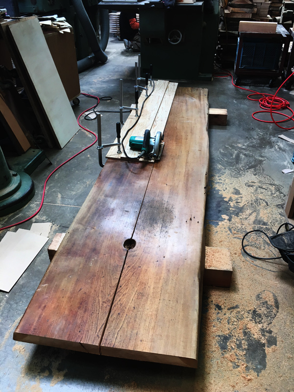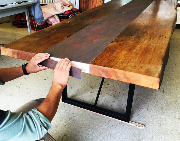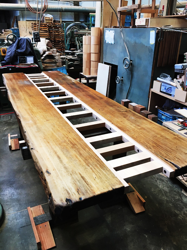 木の癖に合わせて仕上げるテーブル