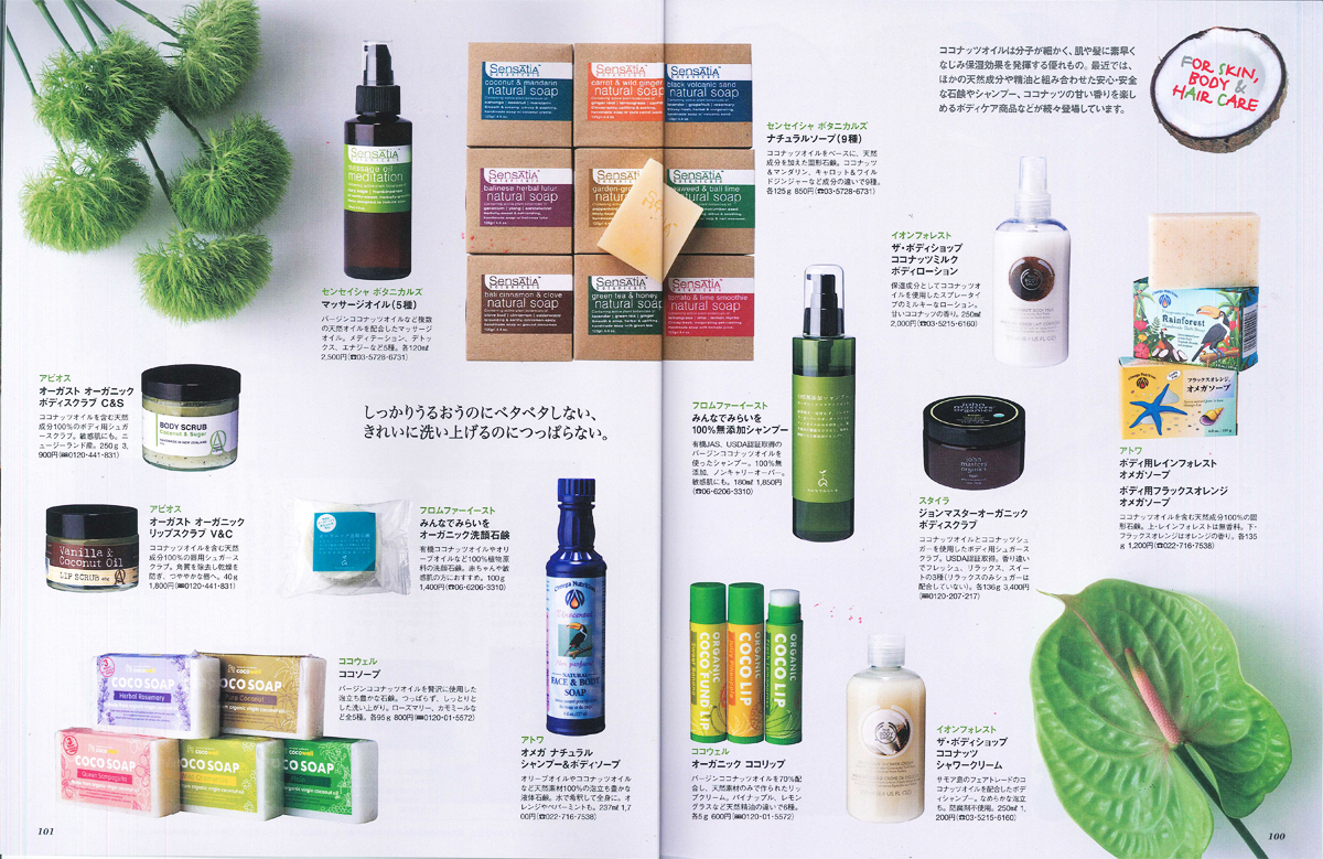 2015年8月5日発行の、クロワッサン特別特集『ココナッツオイル・バイブル2』 にセンセイシャがピックアップされました。P100、101のボディやヘアケア用の製品のひとつとしてピックアップされています。今話題のココナッツオイルの活用法がぎっしり詰まった一冊です♪是非お手にとってご覧下さい(^-^)