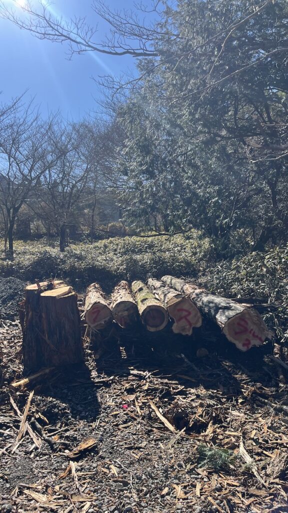 2月某日、晴天を狙って、大箱根カントリークラブ様へ、間伐したヒノキとスギを引き取りに伺いました。