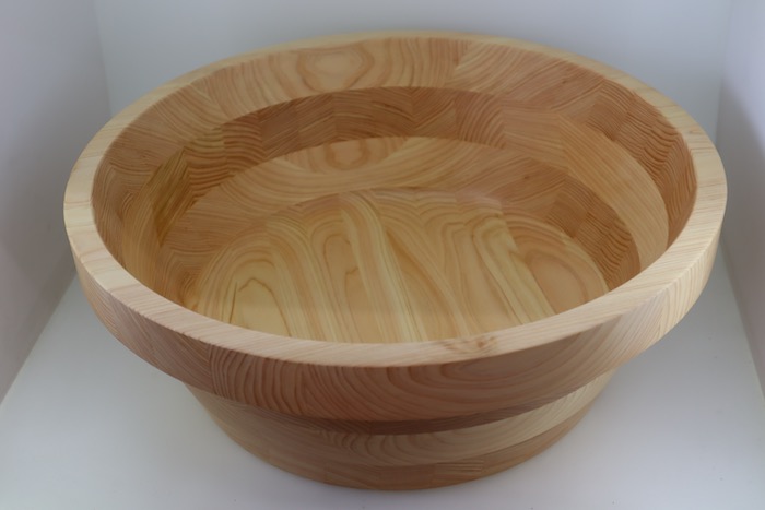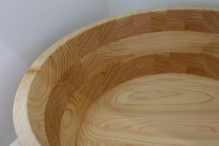 ヒノキの杢目が美しく、ホームページをご覧になったお客さまからのご依頼が多くなっているフットバス。
