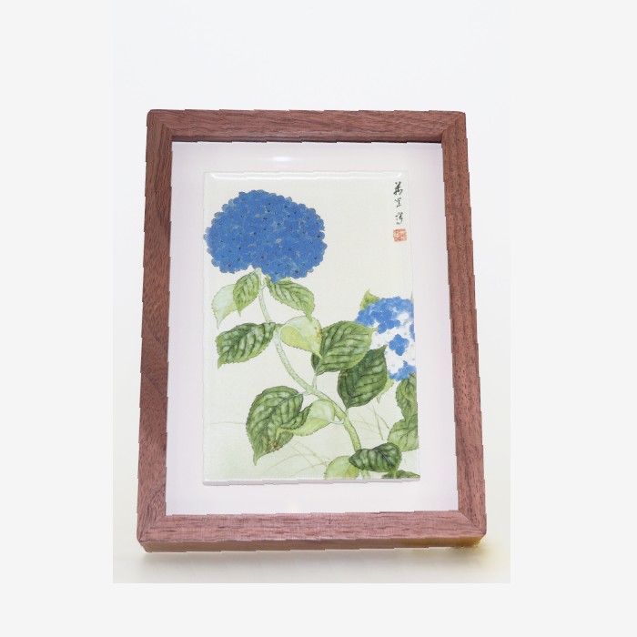 植物の絵が描かれたタイルのフレームを作成致しました。