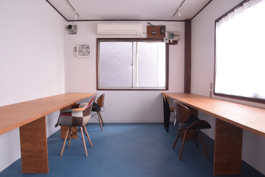 こちらは1階がレンタルスタジオ、2階がコワーキングスペースになっています。