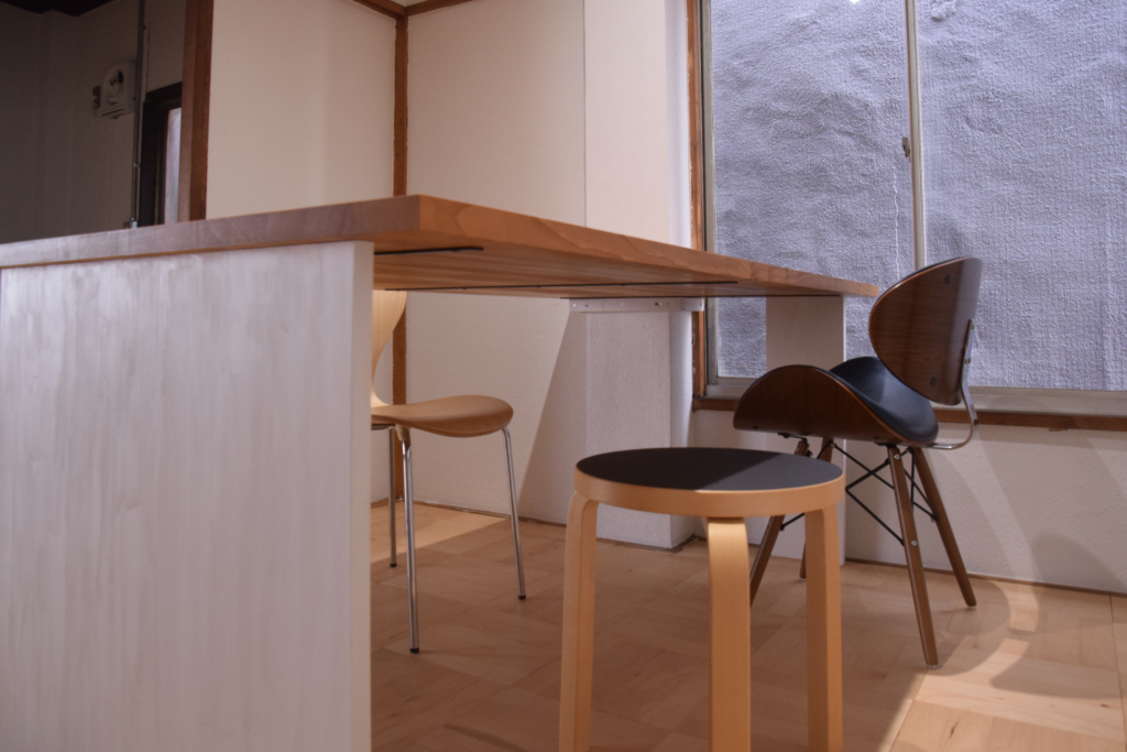 鴨宮北口商店街の一角にまもなくオープンする「かもすた」さまからのご依頼で、家具を製作しました。