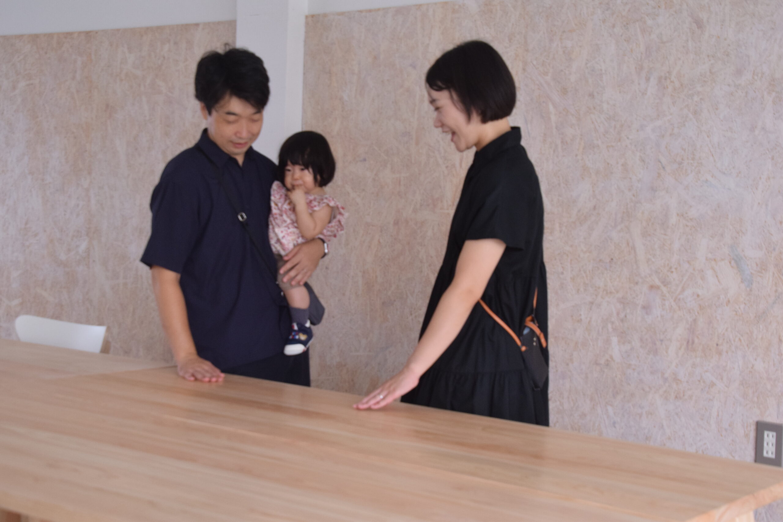 仮置き時、ヒノキのテーブルを前に