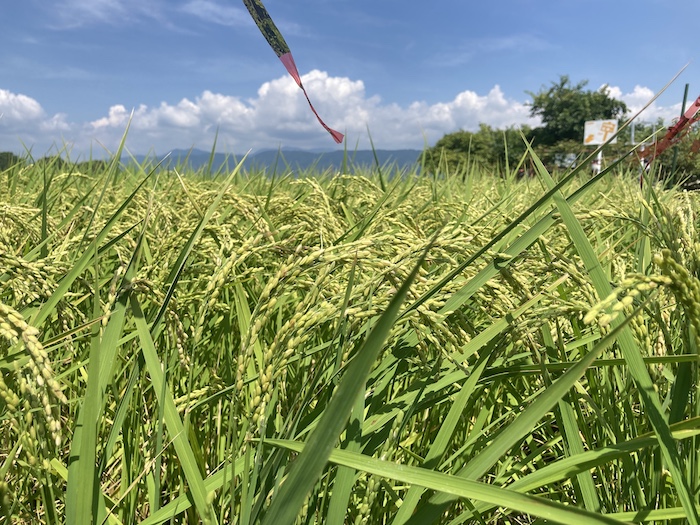 すぐそばの田んぼでは、もう稲がこんなに実をふくらませていました。