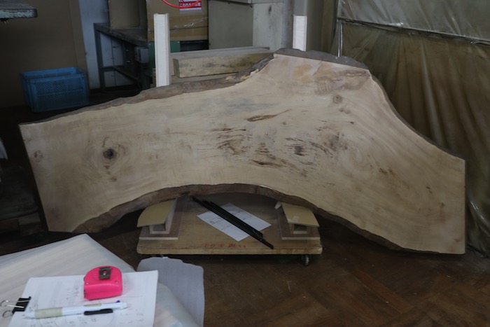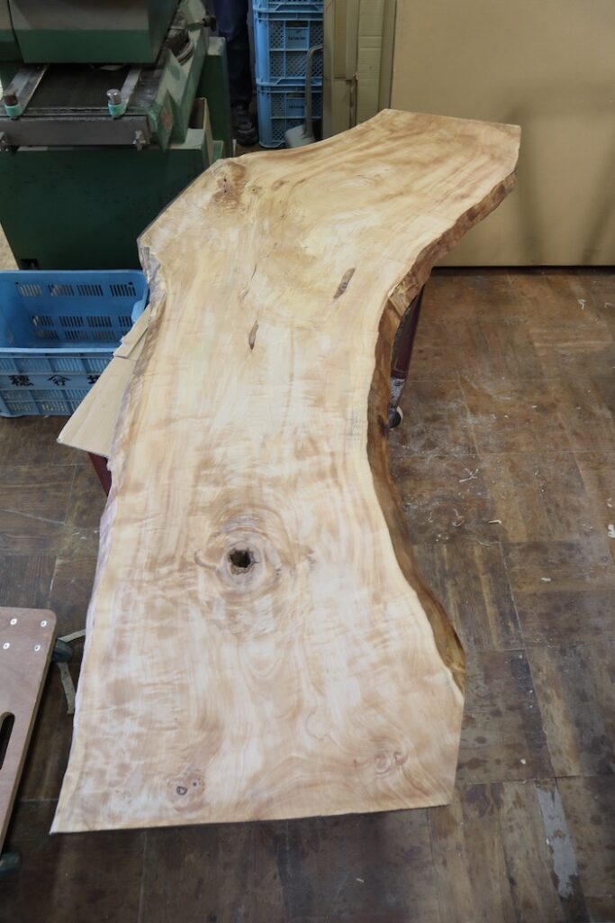 加工・製作のため工場に運ばれてきたクスには、かなり「ねじれ」がありました。