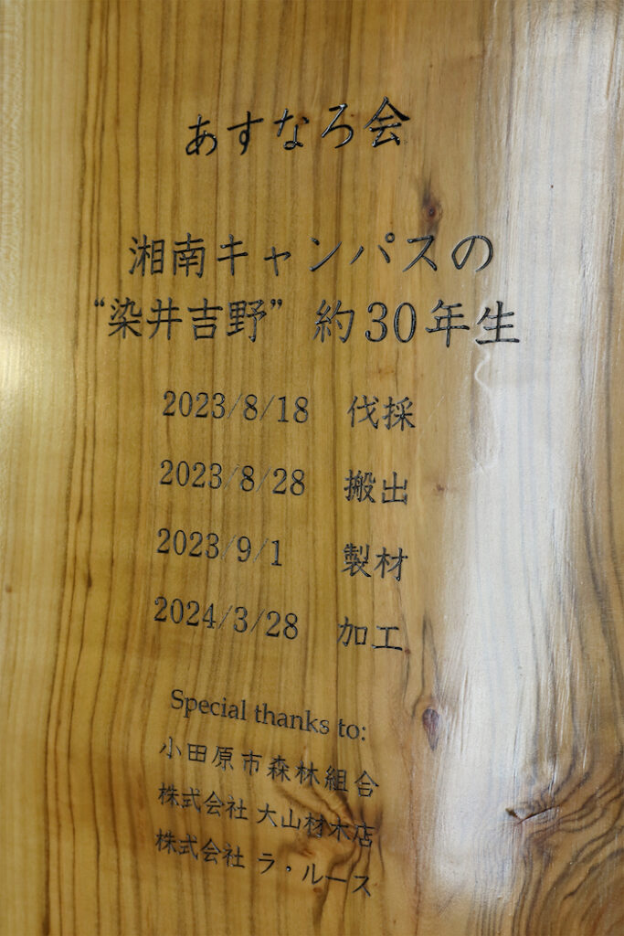 https://la-luz.co.jp/oemkanban/看板には、学部名の裏に伐採・搬出・製材・加工のそれぞれの日を刻みました。