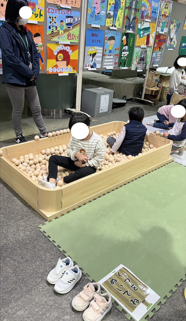 ヒノキ玉プールは子どもたちで賑わっていました。