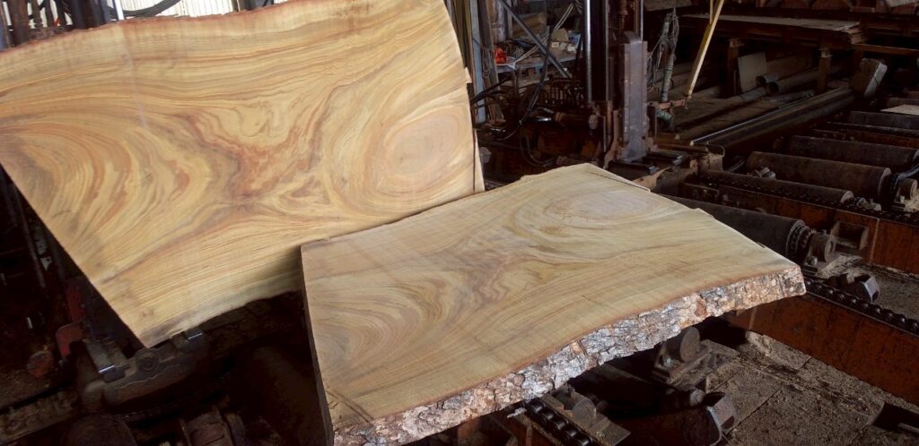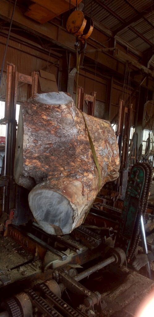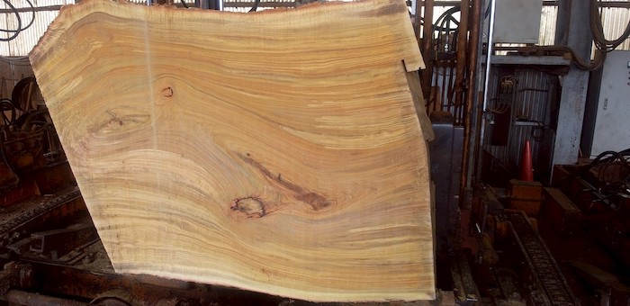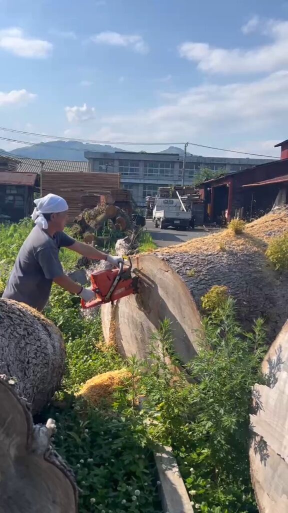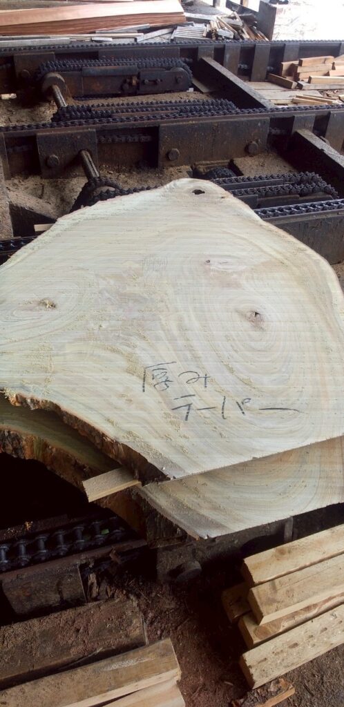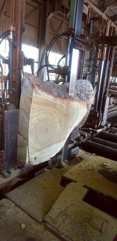 本日は写真多めで、表情豊かなクスの断面や製材所の様子をお届けします。